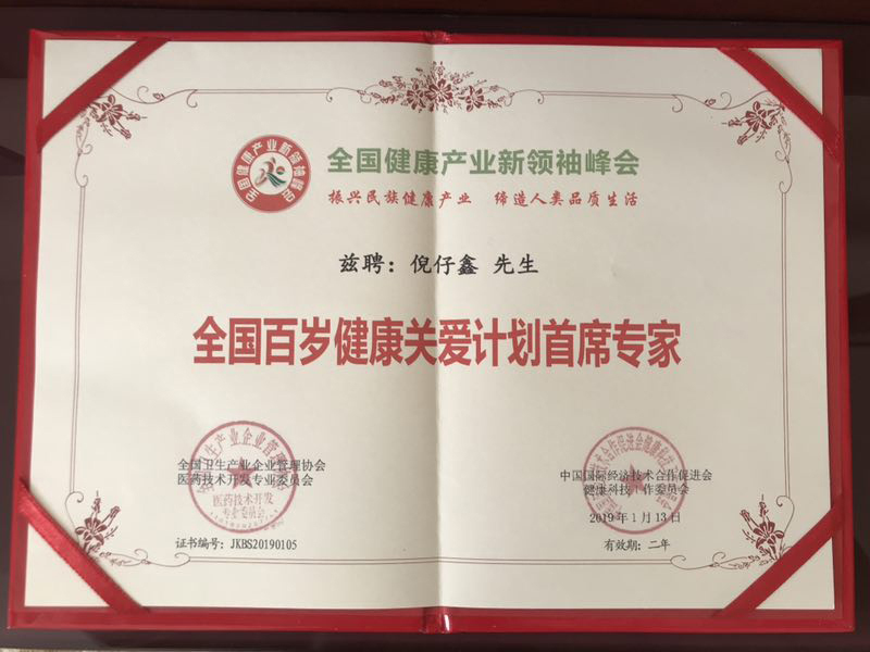 倪仔鑫董事長榮獲“全國百歲健康關(guān)愛計(jì)劃首席專家”